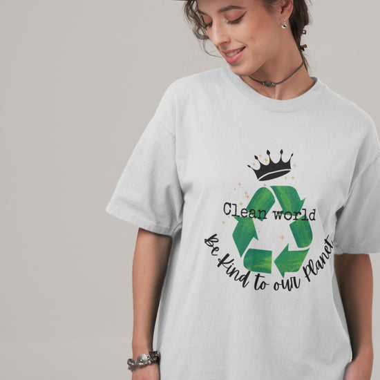 This eco-friendly unisex T-shirt with a crown design promotes kindness to our planet. It's a great way to raise awareness and make a statement about protecting our world. Perfect for those who are passionate about sustainability and environmental issues. Ideal for Earth Day, World Environment Day, and everyday casual wear.