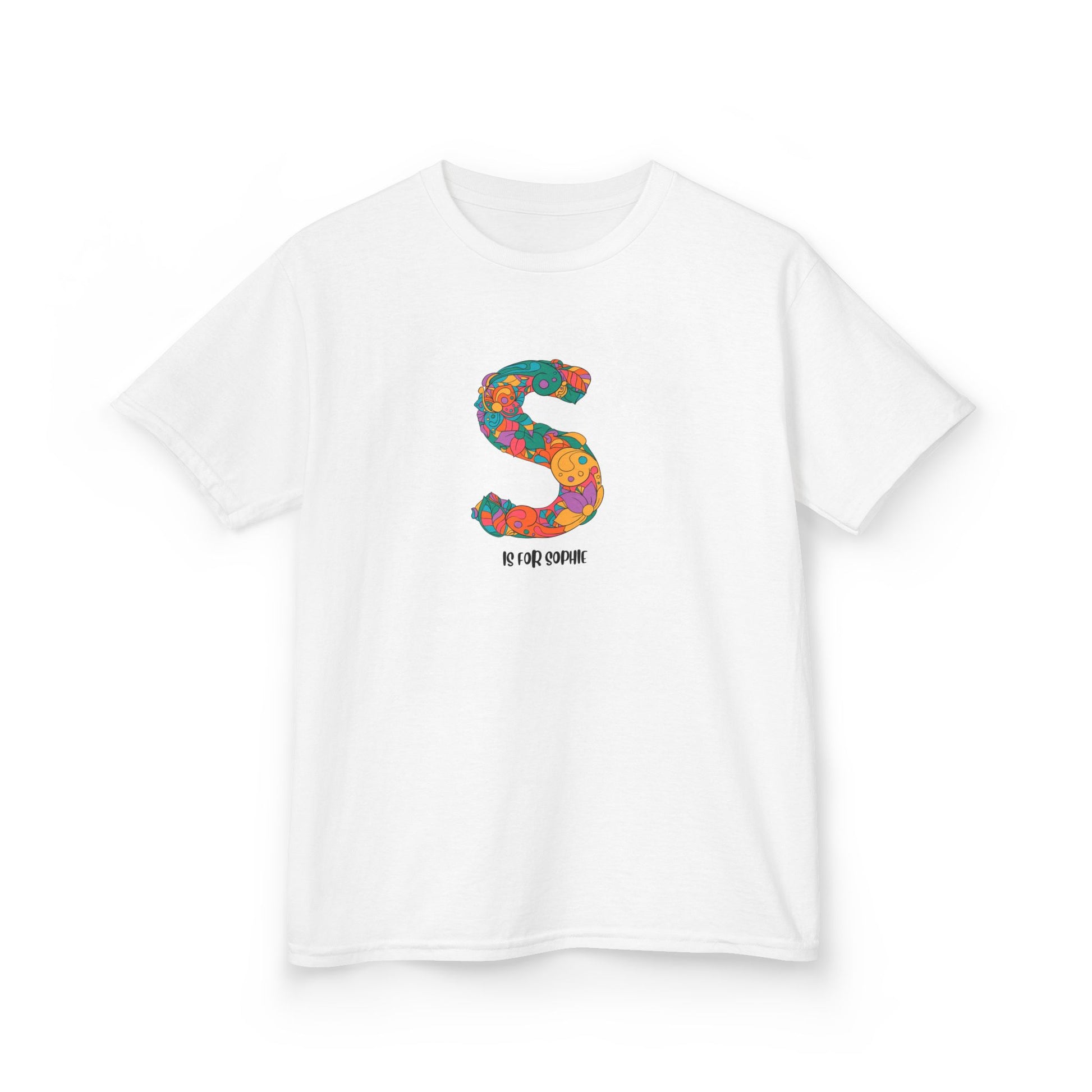 Personalised Floral Alphabet Tee - Fun & Vibrant S Design for Creative Kids