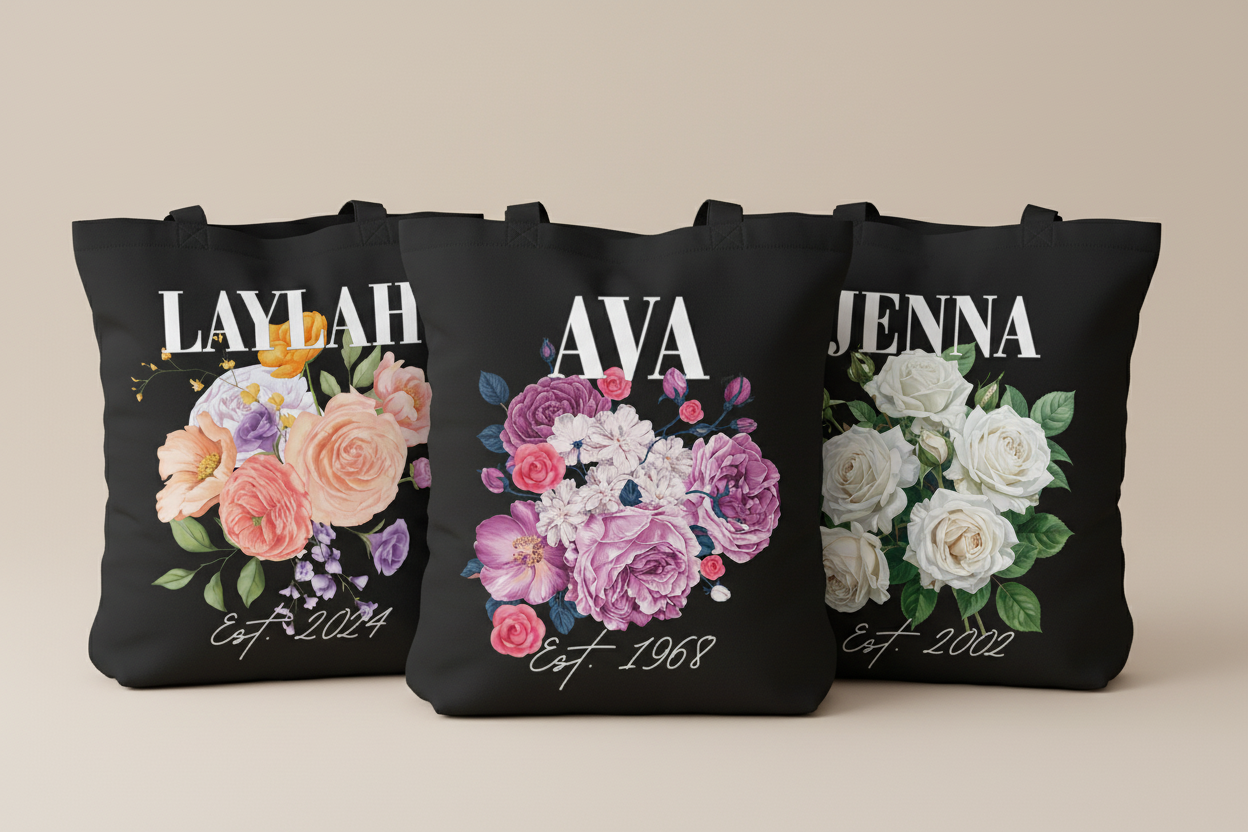 Create your perfect personalised gift with our beautiful floral tote bag! Choose your rose colours, add custom text, names, and optional dates to make it truly unique.