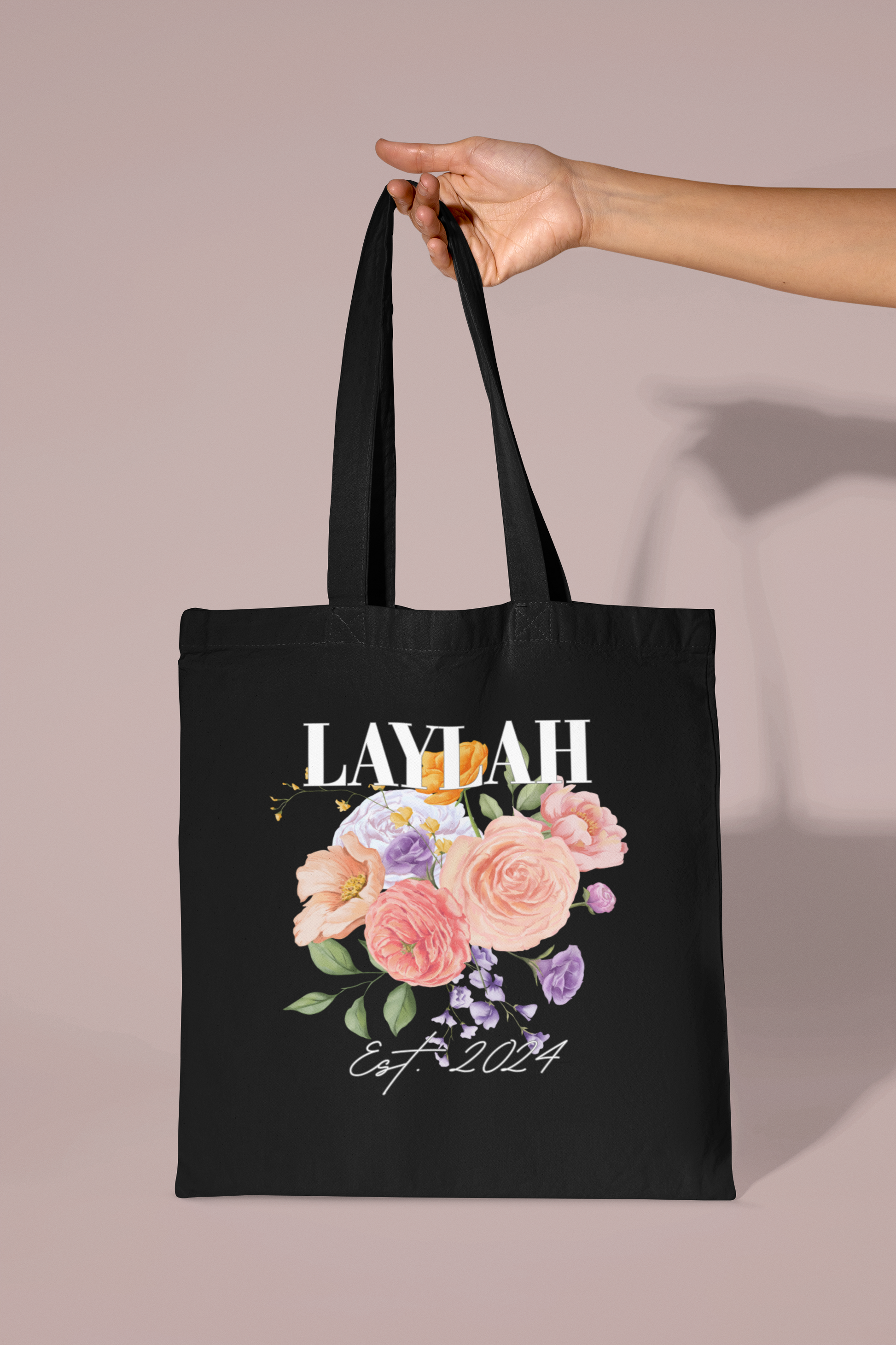 Personalised Floral Tote Bag | Custom Name, Text & Date | Choose Rose Colours | Eco Gift