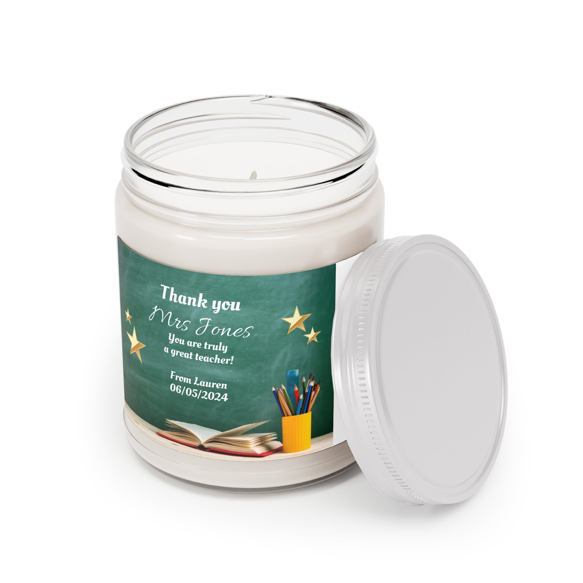 Made to soothe long and stressful days, this custom candle jar can accommodate all your ideas, artwork, or inspirational quotes on its custom candle label. The candle itself is made 100% with a natural soy wax blend and cotton wick. Choose between fragrances such as Vanilla Bean, Comfort Spice, Sea Breeze, Unscented, Fresh Balsam, Spiced Pumpkin Ginger, Pink Grapefruit and Eucalyptus Lavender Herb.